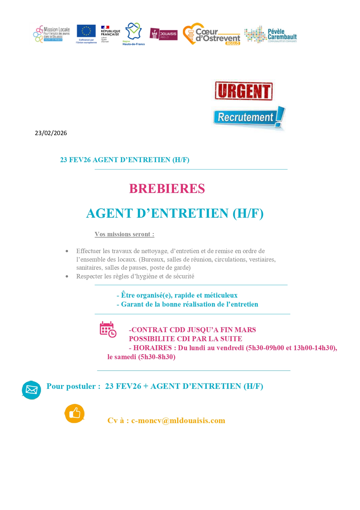 Pour postuler, envoyez votre CV et votre lettre de motivation par e-mail à c-moncv@mldouaisis.com